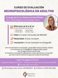 La Delegación Regional Río Cuarto del Colegio de Psicólogos de la Provincia de Córdoba invita a las/os colegas matriculadas/os a