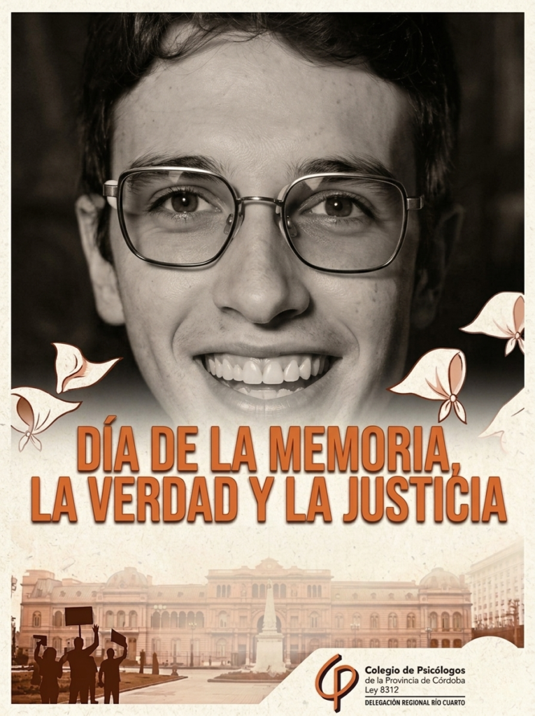 Desde la Delegación Regional Río Cuarto, en este Día Nacional de la Memoria por la Verdad y la Justicia, reafirmamos nuestro compromiso inquebrantable como institución profesional conforme lo declara nuestro Código de Ética: Bregrar por el ejercicio ético de la psicología es inseparable de la lucha por una sociedad donde primen el respeto absoluto a los Derechos Humanos y la libertad de pensamiento. No hay salud mental posible sin libertad.