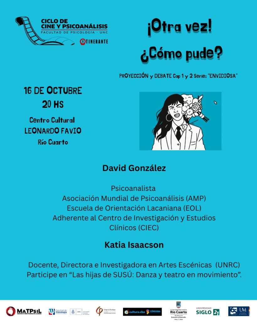 La actividad consiste en la proyección de los primeros dos capítulos de la serie argentina «Envidiosa» , seguida de un debate con un psicoanalista y una artista. Se abordará el concepto de la repetición, una experiencia que el psicoanálisis considera fundamental y que resuena en la vida cotidiana de todas las personas.