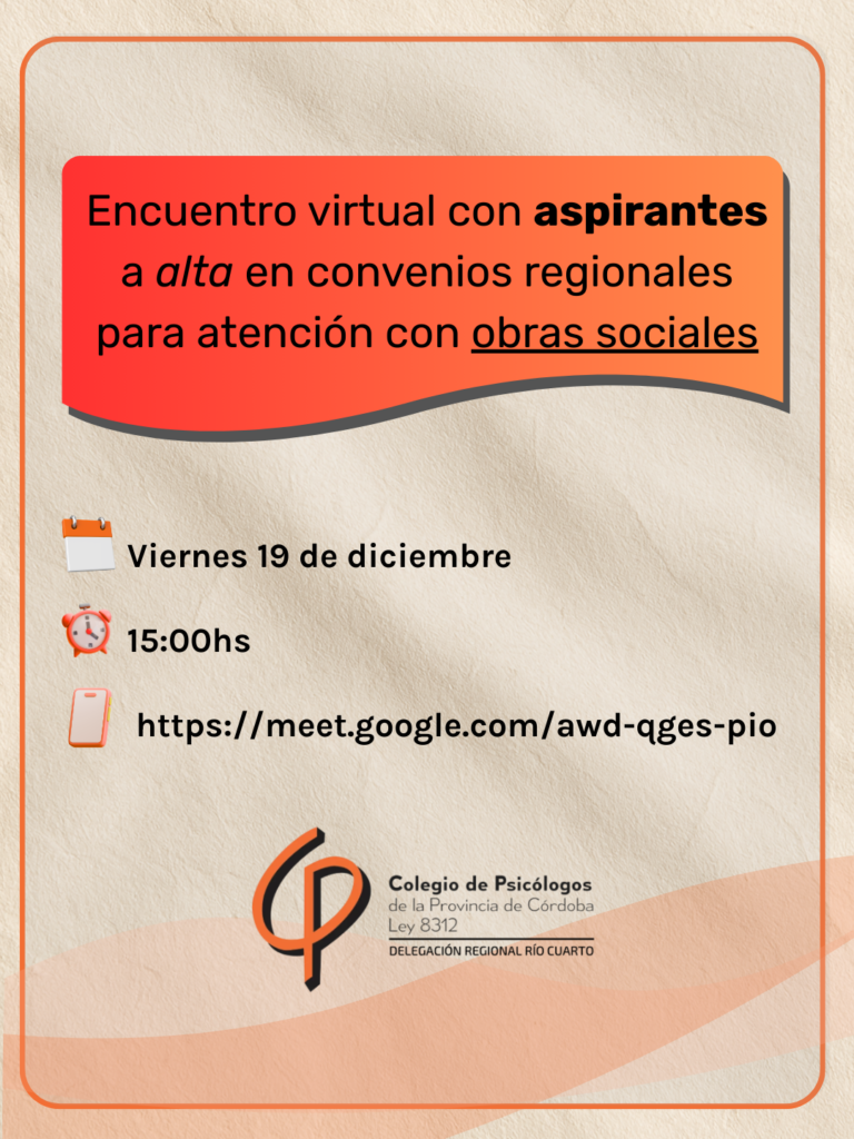 La Delegación Regional Río Cuarto del Colegio de Psicólogos de la Provincia de Córdoba informa a todos y todas las