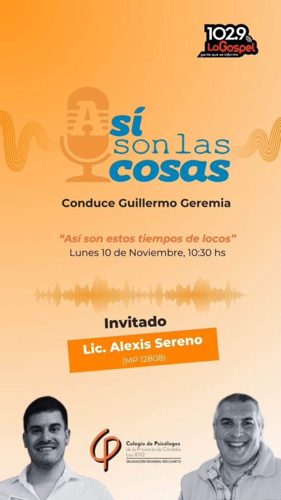En el programa “Así son las cosas”, conducido por Guillermo Geremia, el Lic. Alexis Sereno (MP 12808) dialoga sobre la salud mental desde una perspectiva relacional.