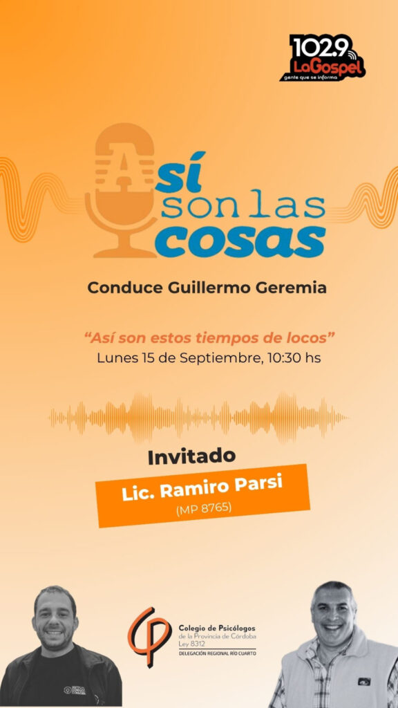 En el programa “Así son las cosas”, conducido por Guillermo Geremia, el Lic. Ramiro Parsi (MP 8765) aborda la psicología en la conducción, poniendo el acento en los aspectos cognitivos y emocionales que intervienen en el acto de conducir y en la importancia del trabajo preventivo para disminuir los riesgos viales.