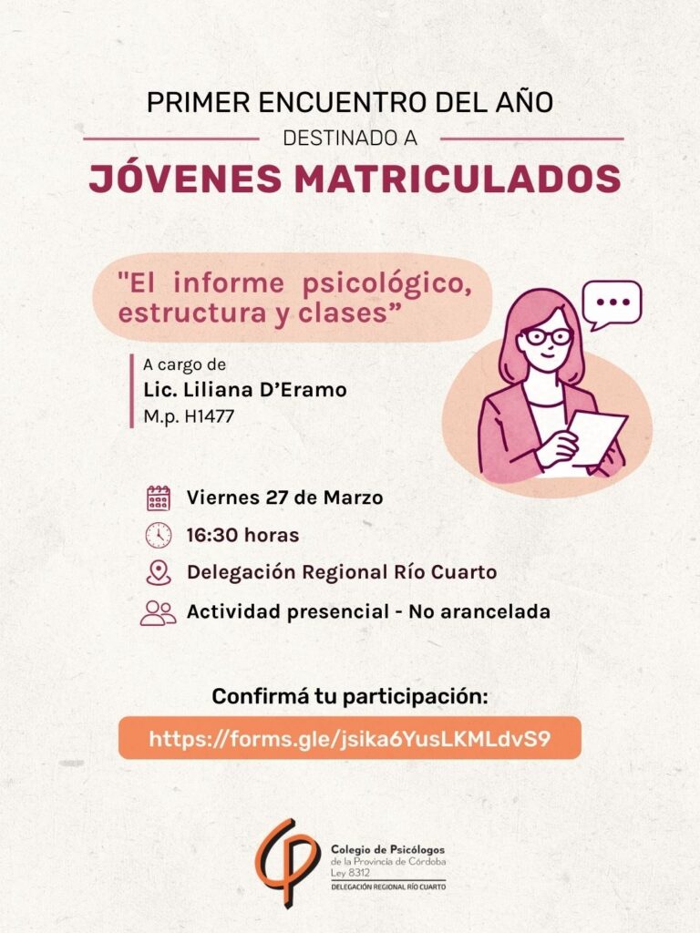 «El informe psicológico, estructura y clases” a cargo de la Lic Liliana D’Eramo. M.p. H1477