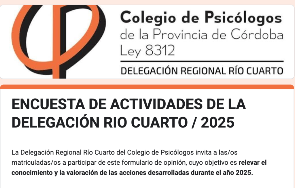 La Delegación Regional Río Cuarto del Colegio de Psicólogos de la Provincia de Córdoba se complace en anunciar la gestión